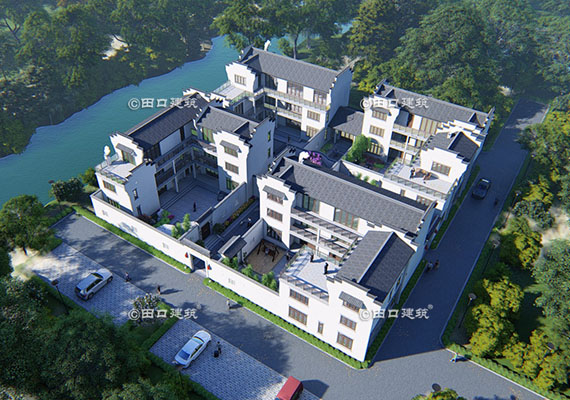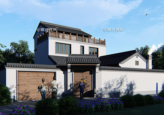 占地面積 131.7㎡ 土建造價 40.0萬 三層新中式小別院